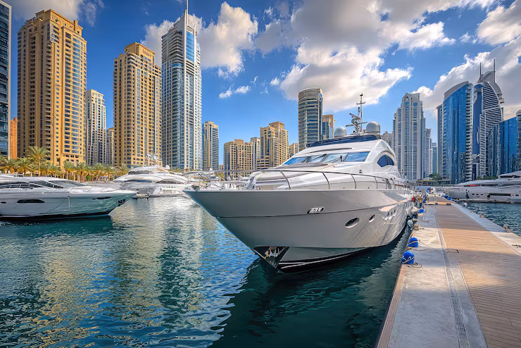 Hire a Yacht for your private venue, the stunning waters of Dubai aboard a private chartered 33, 45, 50 & 64 Feet Yacht and experience memorable views of iconic sights such as Dubai Marina, the Palm Jumeirah and the luxurious Burj Al-Arab. Sail along the coast of the Persian Gulf in style.